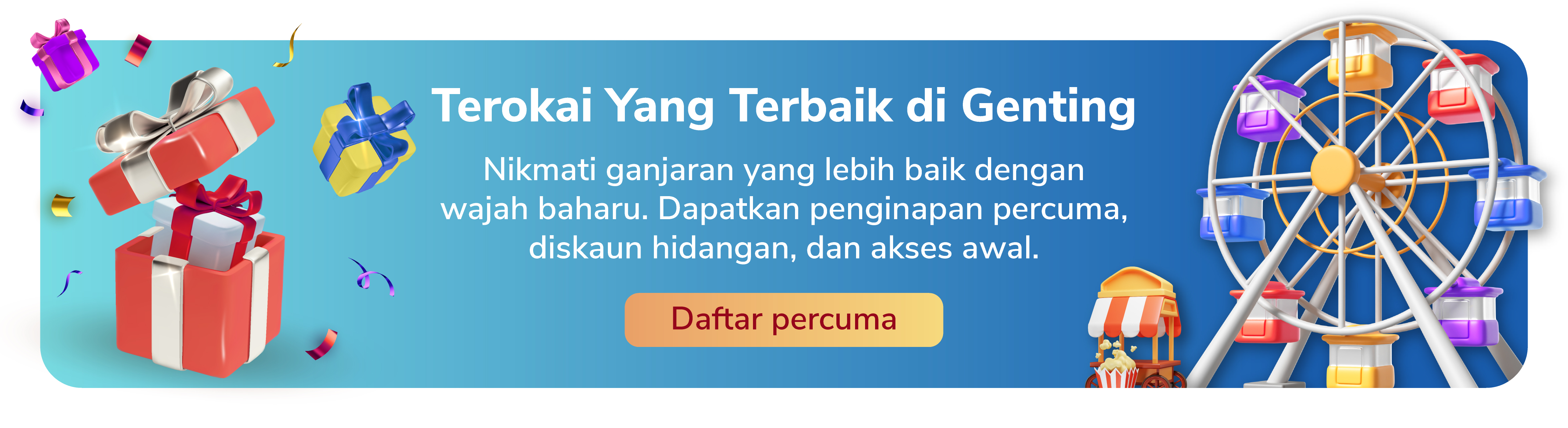 Belum menjadi ahli lagi? Daftar hari ini sebagai ahli Program Ganjaran Genting kami supaya anda boleh menikmati ganjaran yang lebih baik, cepat dan mudah.