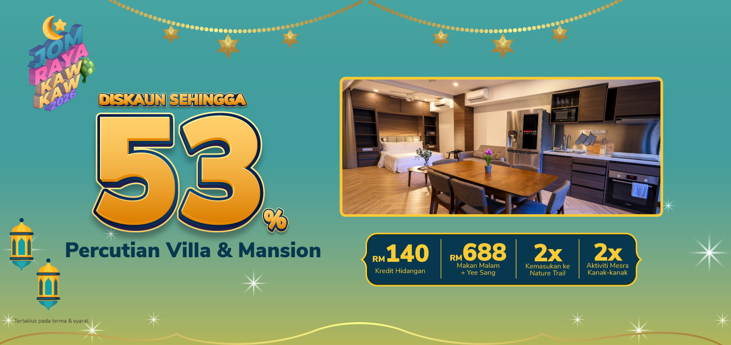 Raikan Hari Raya dalam suasana yang selesa dan luas, pilih daripada enam (06) jenis bilik untuk seisi keluarga berkumpul bersama. Pakej kami turut dilengkapi dengan pelbagai aktiviti dan kredit hidangan, supaya sambutan Hari Raya anda lebih meriah dan bermakna.