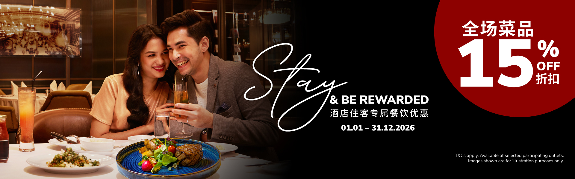 3. Diskaun ini hanya terpakai untuk pesanan hidangan di restoran sahaja dan tidak sah untuk bawa pulang (takeaway), penghantaran, atau perkhidmatan makan di dalam bilik.
