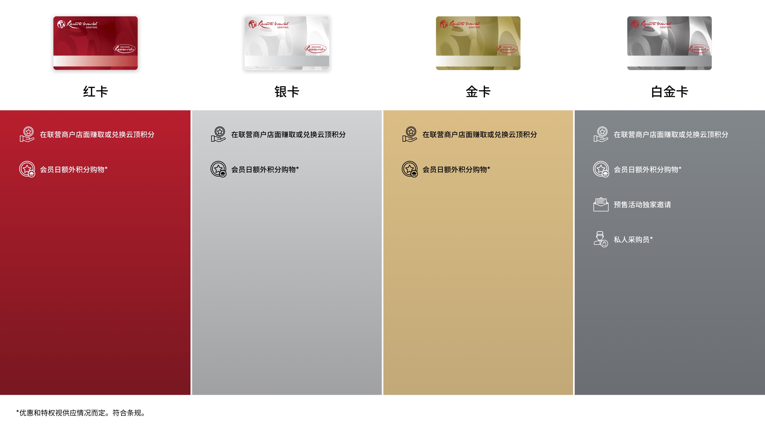 您可在云顶世界范围内消费时,包括餐饮、购物及玩乐等的同时赚取及兑换云顶积分(GP)。免费申请会员籍,并发掘一个全新的会员专属的奖赏世界。