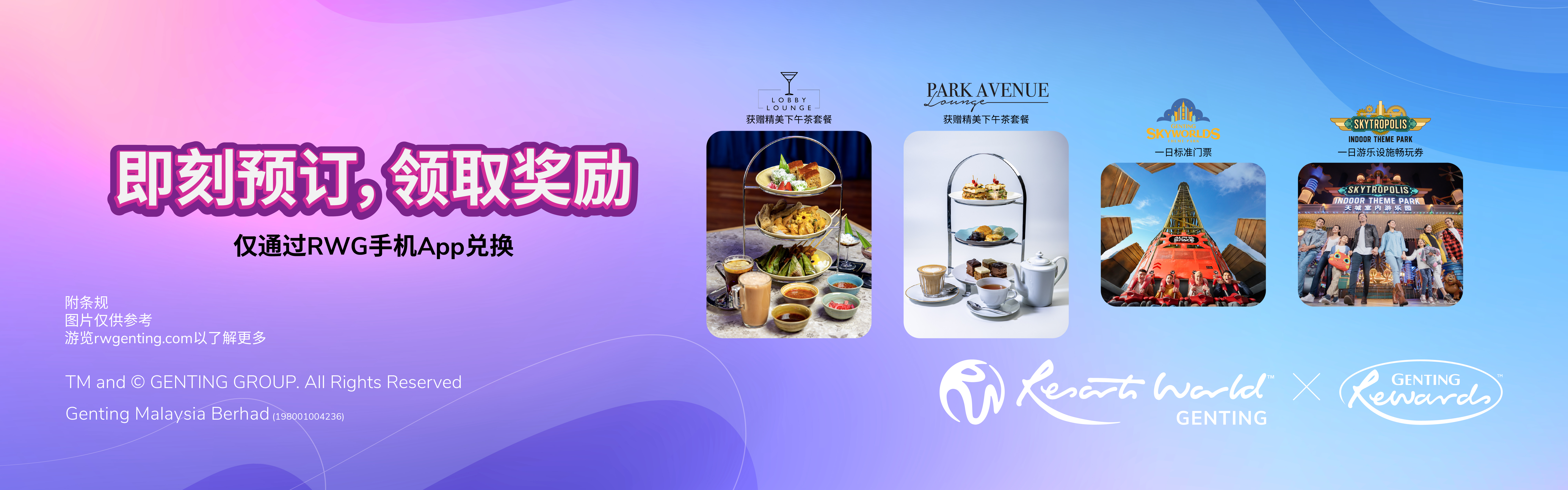 b. 此优惠活动适用酒店:康乐福酒店 (Crockfords)、云豪酒店 (Genting Grand)、高原酒店 (Highlands Hotel)、名胜酒店 (Resort Hotel)、云顶天城世界酒店 (Genting SkyWorlds Hotel)、第一大酒店 (First World Hotel) 和云顶世界阿娃娜酒店 (Resorts World Awana)。