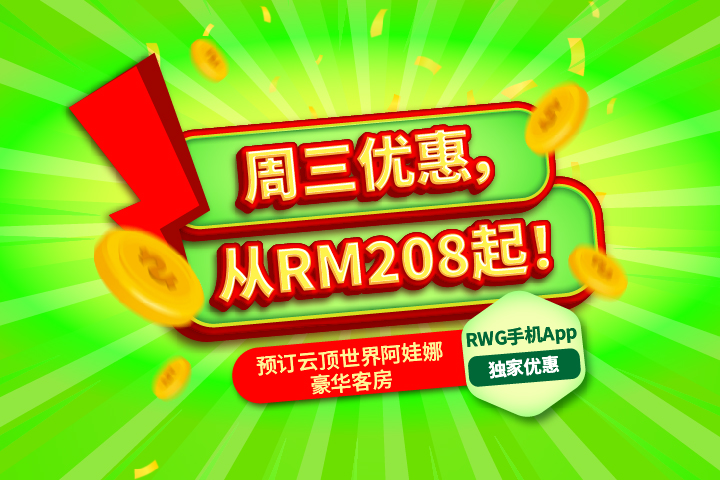 云顶世界阿娃娜被1亿3千万年历史的热带雨林环绕,并坐落于蒂蒂旺沙连绵山峦的最南端,而且建立于海拔3,100英尺的高原上, 气候凉爽宜人,绝对是避暑首选。