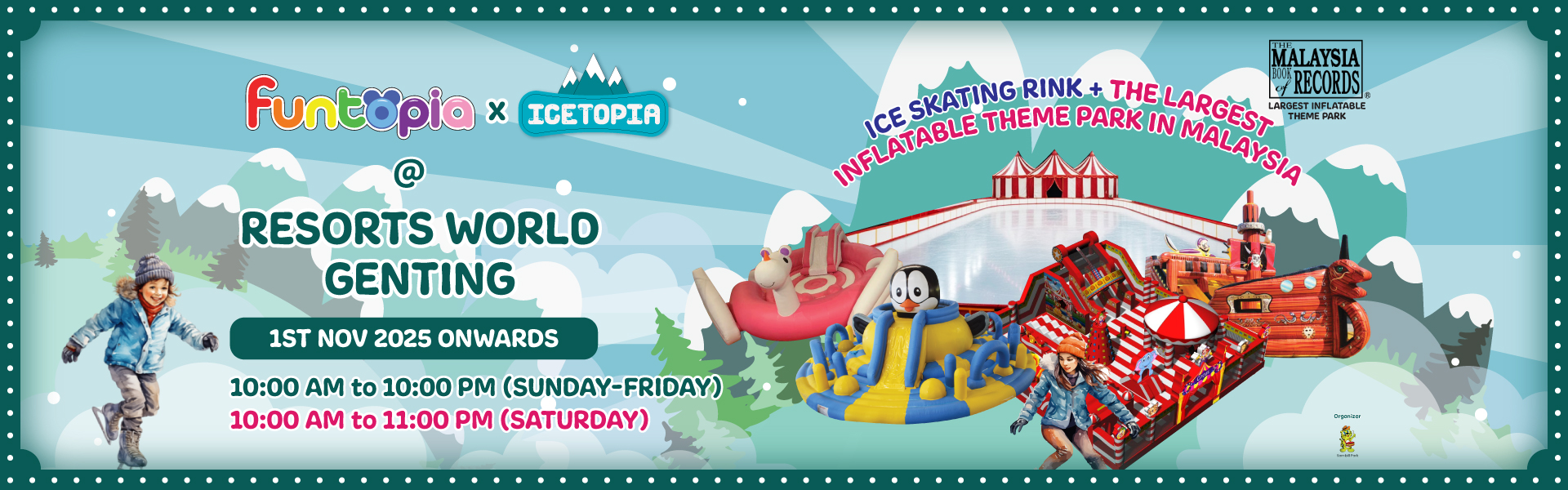 Funtopia, the Largest inflatable Theme Park is designed for children, the family, and young adults. Covering 16,000 sq ft of space at Pavilion, Skytropolis Indoor Theme Park, Resorts World Genting.