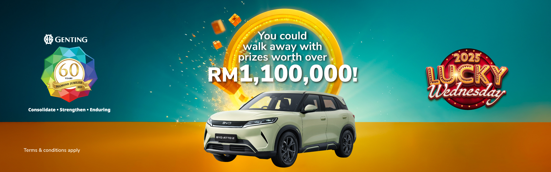 Your mid-week perk-up may soon be in the form of cars, staycation packages, dining vouchers and more prizes – so simply earn 1GP by spending RM100 in a day with your Genting Rewards card to participate and stay lucky!