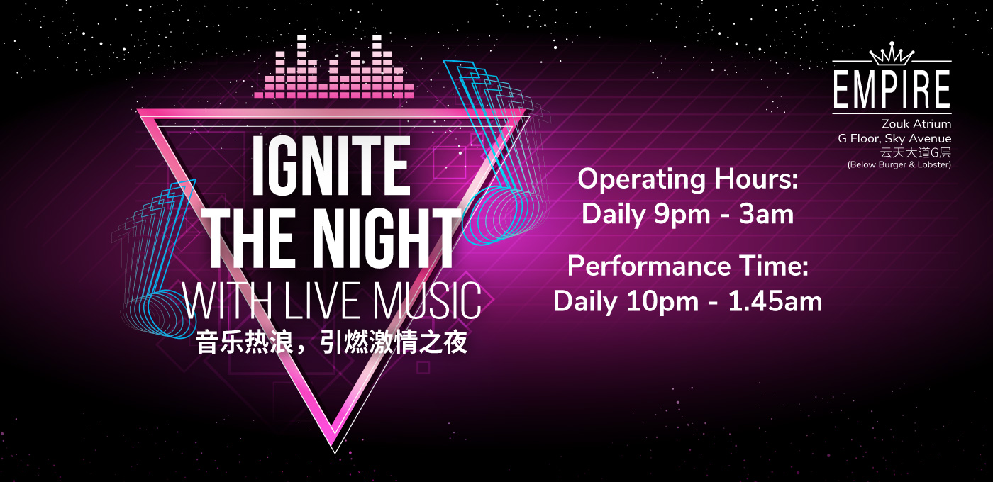 Empire is a vibrant and dynamic hotspot that brings together the best of live entertainment, mouth-watering food, and an Asian-inspired menu that pushes the boundaries of flavour. From Korean chicken skewers to cheese baked Takoyaki; tom yum seafood and yang chow fried rice, our varied menu will surely meet your needs. Whether you’re a music lover, a foodie, or someone just looking for a lively night out, this is the place where all of your senses come alive.