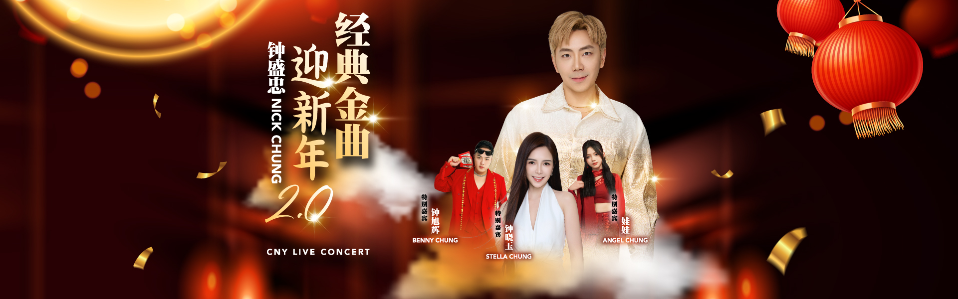 在贺岁歌曲领域中,钟盛忠更闯出另一片天空,由他本身词曲创作的《美好新年》突破两千万的观看流量写下辉煌的一页,钟盛忠四度受邀在云顶云星剧场开唱,届时钟盛忠将使出浑身解数带来精彩的流行歌曲 经典名曲和贺岁歌曲和你同欢共乐,演唱会中也特别邀请Stella 钟晓玉 Angel 娃娃 和Benny 钟旭辉 担任演出嘉宾。
