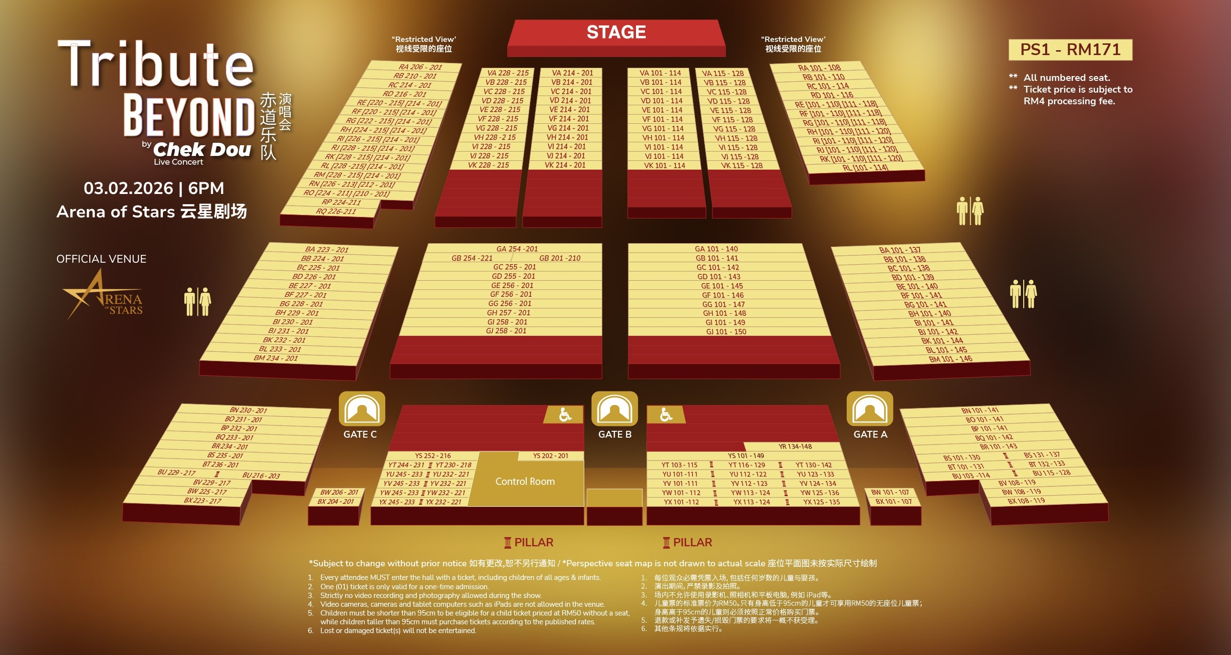 • 每位观众必需凭票入场, 包括任何岁数的儿童与婴孩。