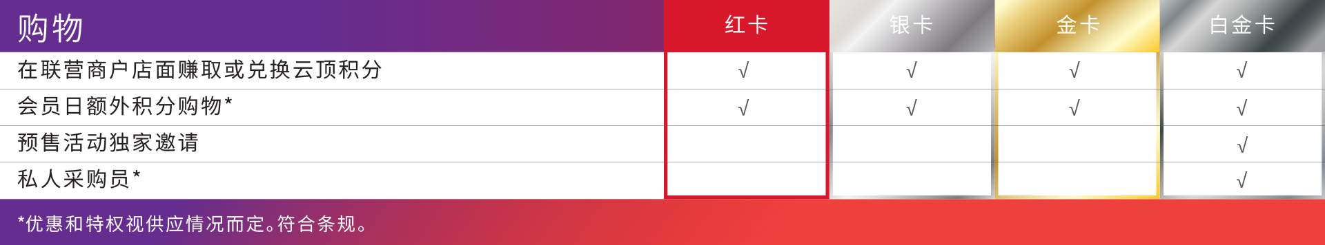 | 云尊银卡 | 100 |