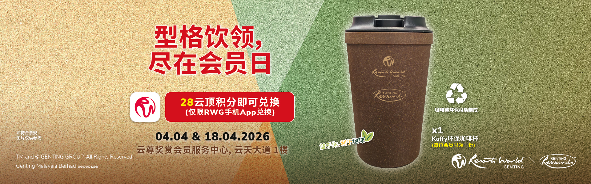 您可通过RWG手机App,扣除28云顶积分进行兑换。会员可前往位于云天大道1楼的 “云尊奖赏会员服务中心” (豪华茶餐厅对面) 领取 Kaffy 咖啡杯。