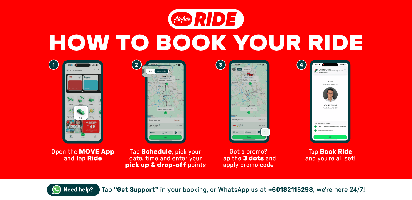 • Open the AirAsia MOVE app and simply tap on the "Ride" tile located on the homepage.
