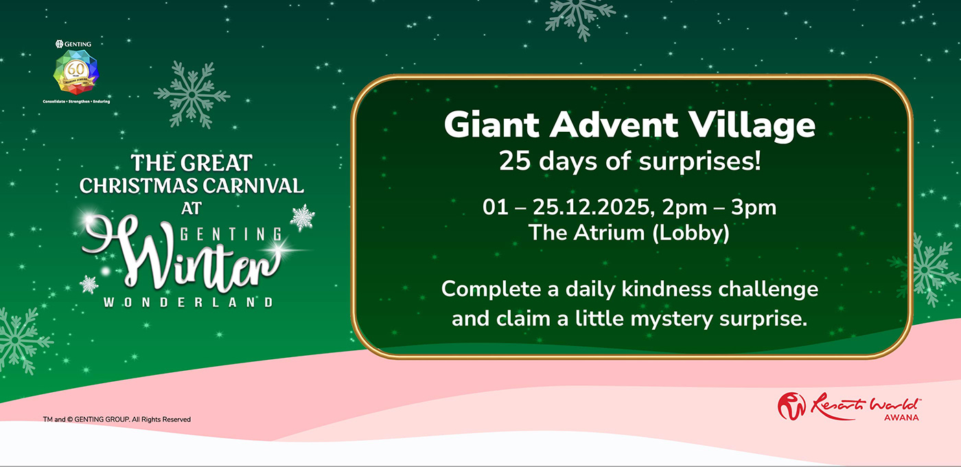 Every stay at Resorts World Awana comes with a cosy touch of Christmas, made even better with our cool, refreshing weather that feels a little like a winter holiday. It is the perfect place for families to relax and enjoy the season. To make your visit even more special, we have a line-up of festive activities waiting for you.