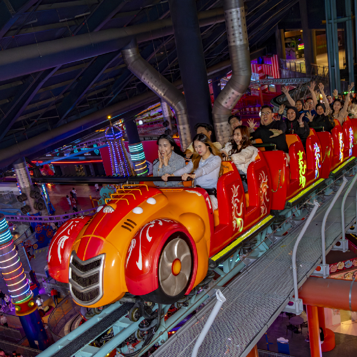 A family-friendly rollercoaster that takes riders to the highest peak of Skytropolis, offering a bird’s-eye view of the park while navigating through gentle dips and turns. Guests under 130cm and above 190cm in height may not ride.