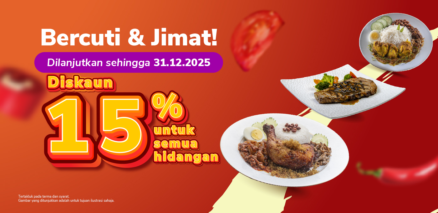 Penjimatan Lazat!: Nikmati diskaun 15% untuk Semua Tetamu Hotel