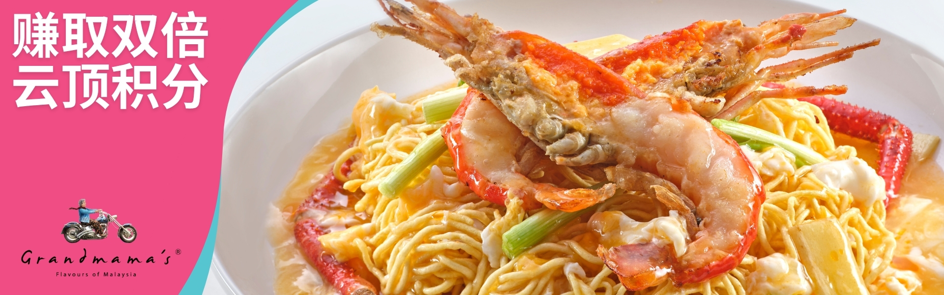 优惠期仅限三个月,赶快行动!在云天大道 的Grandmama's 店面品尝美味佳肴,每消费RM1即可赚取双倍云顶积分 (GP)!