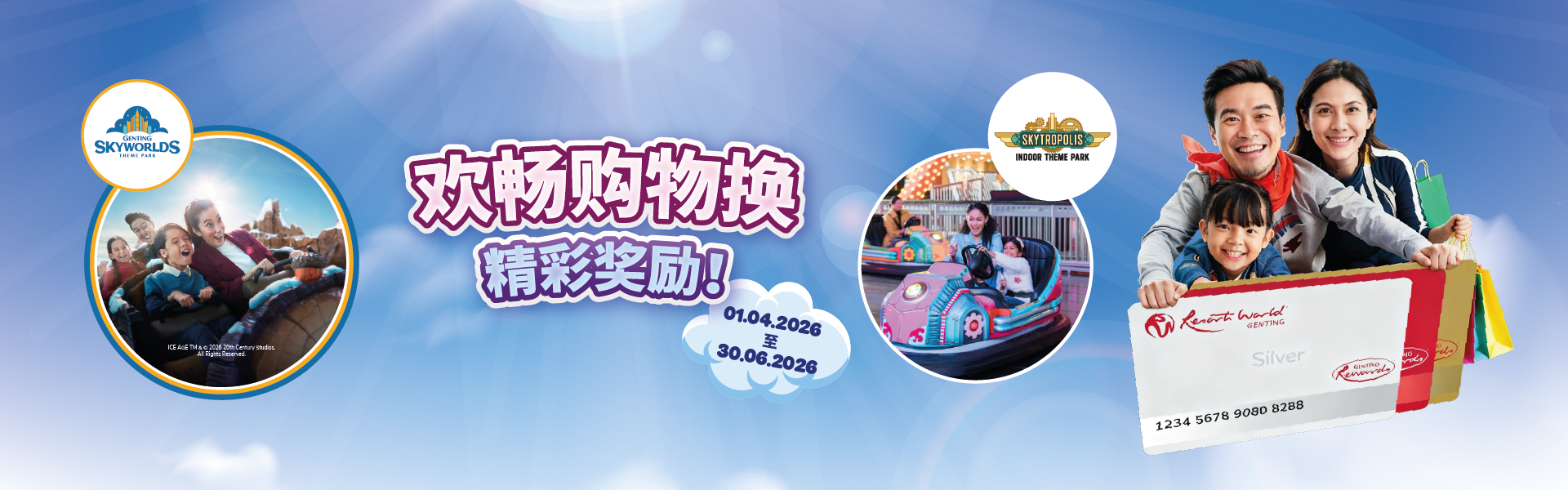 限时三个月!云尊奖赏为您在 ”云顶高原名牌折扣购物中心” 和 “柔佛名牌折扣购物中心”的购物体验添加惊喜福利,为您送出 “云顶天城世界主题乐园” 或 “天城室内游乐园"一日门票!