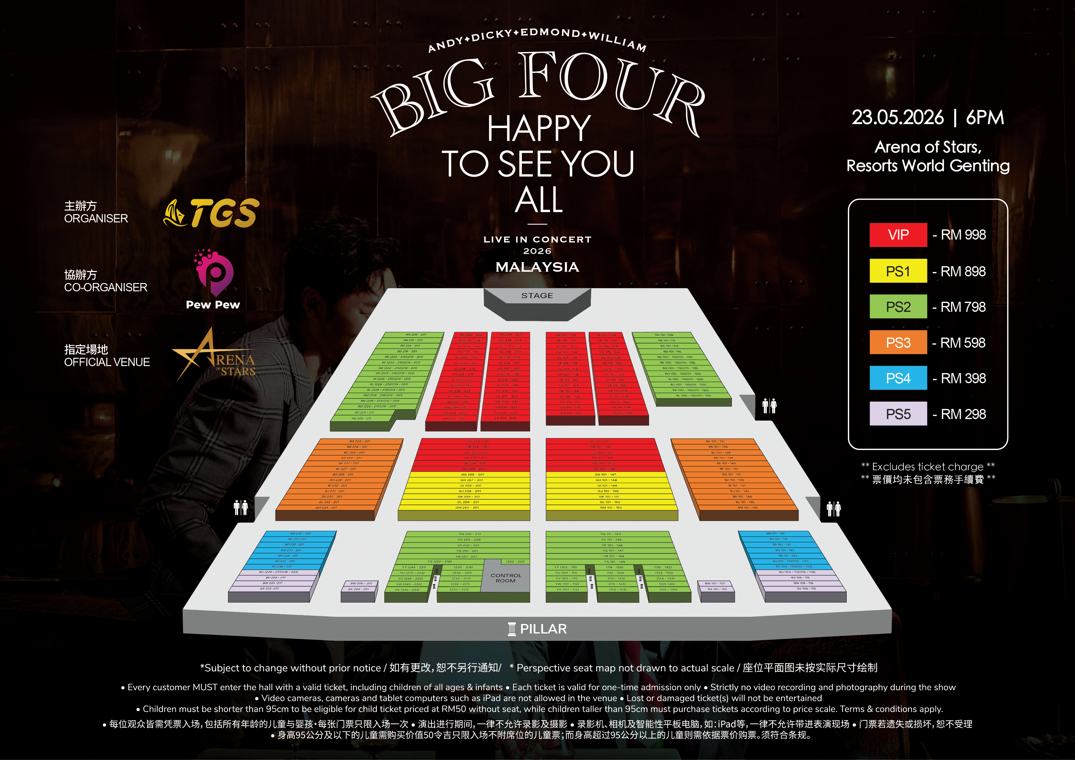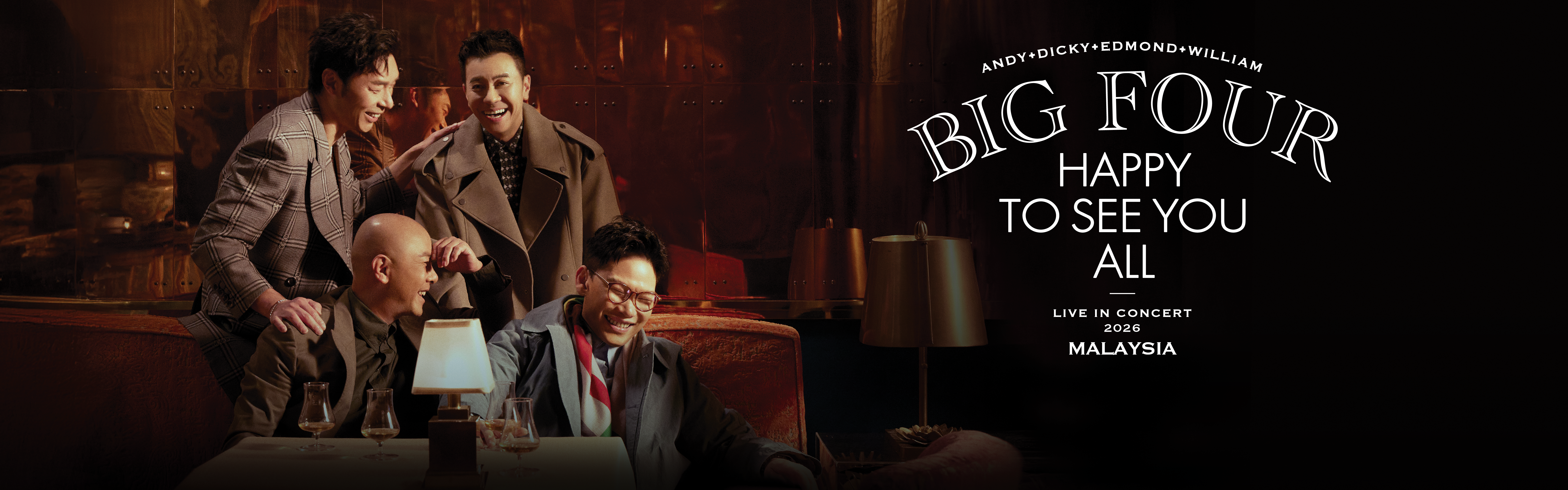 The legendary Cantopop quartet BIG FOUR—comprising Andy Hui, Dicky Cheung, Edmond Leung, and William So—is officially returning to Malaysia. After a 13-year hiatus and following sold-out shows in Hong Kong, Singapore, and the US, the group will bring their HAPPY TO SEE YOU ALL tour to the Arena of Stars, Resorts World Genting on May 23rd. This reunion marks a sentimental return for the four icons, who first rose to fame during the "Golden Age" of Hong Kong music and have since become symbols of a shared cultural era.