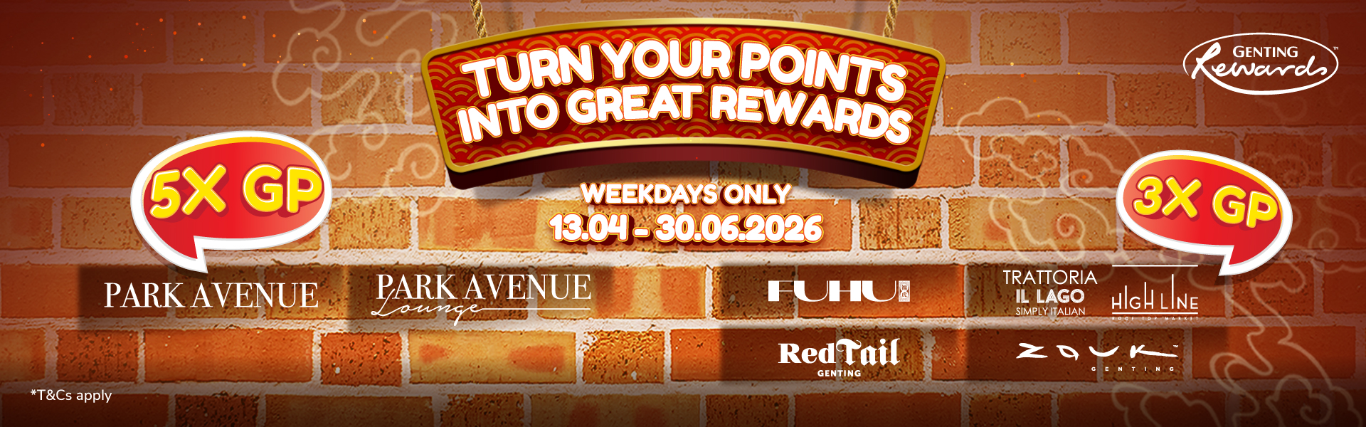 Note: Promotion excludes Genting Rewards Members' Day and Double-Digit Days (5/5, 6/6, 18/5, 18/6/2026)