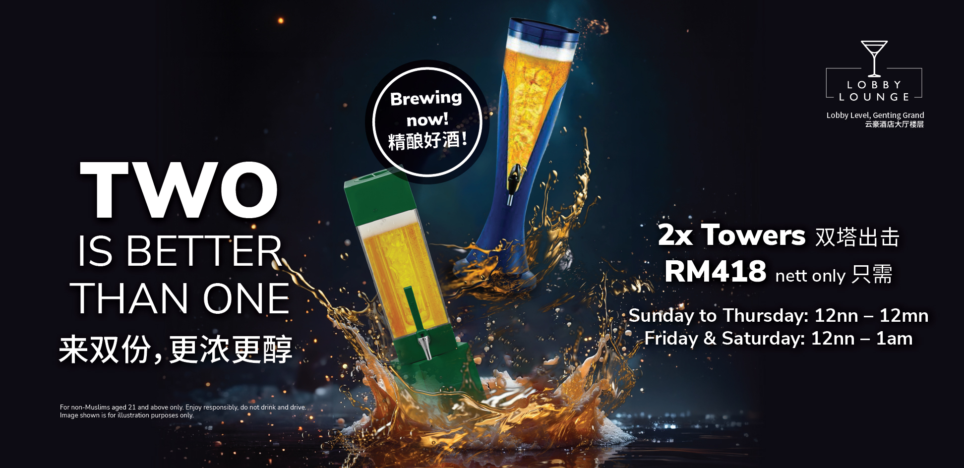 Elevate your night with our beer tower, complete with live bands, electrifying performances, and more! Let the rhythm of the music and the flow of the brews transport you to a higher level of enjoyment.