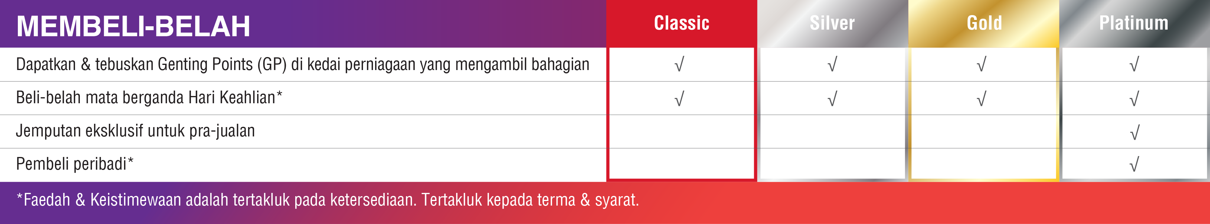 - Mana-mana Ahli Program ini akan terikat dengan Terma dan Syarat Program Kesetiaan Genting Rewards dan mana-mana versi Terma dan Syarat yang dikemas kini seperti yang akan dikeluarkan dari semasa ke semasa, yang mana versi sedemikian akan tersedia di https://www. rwgenting.com/gentingrewards.