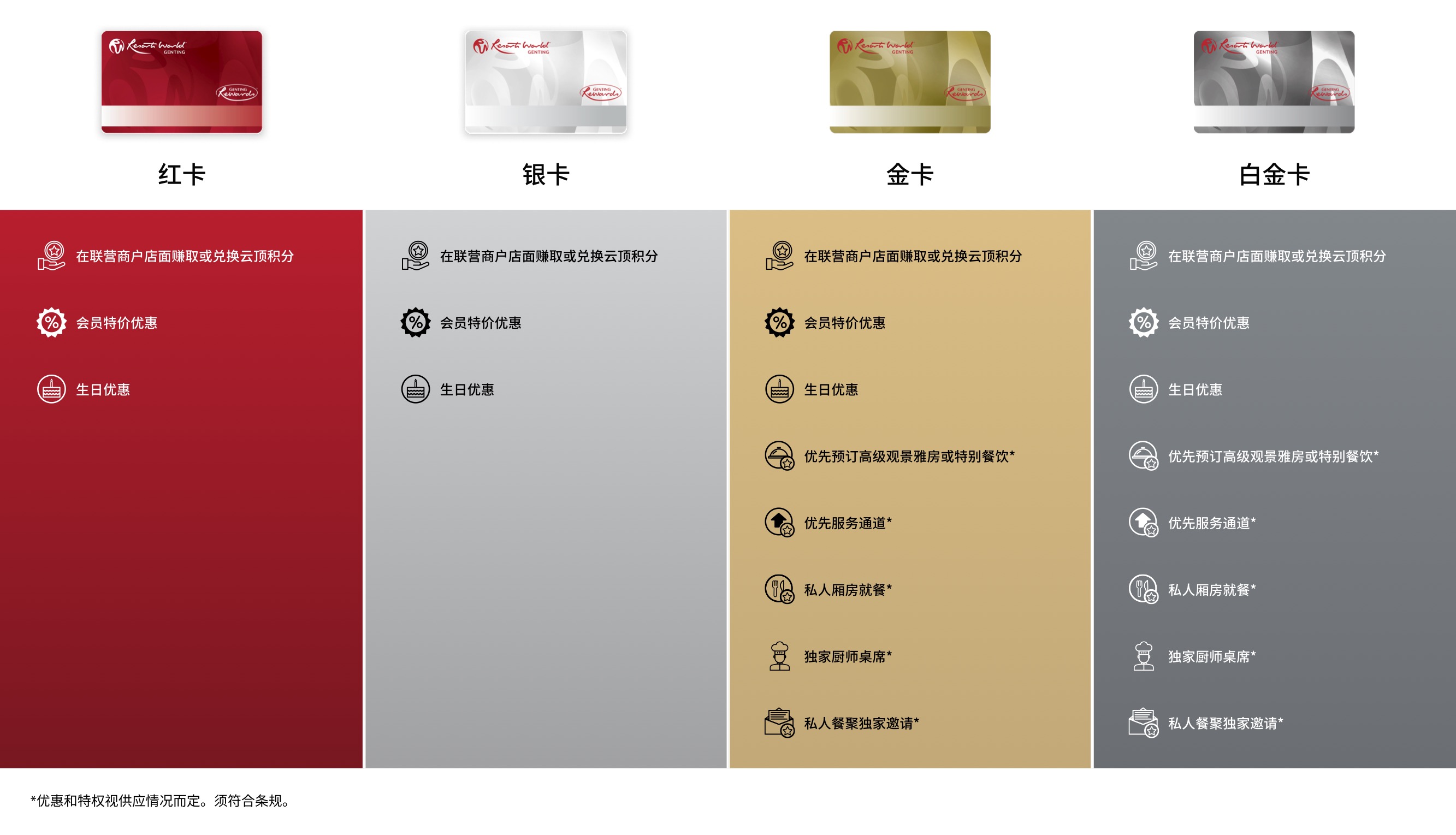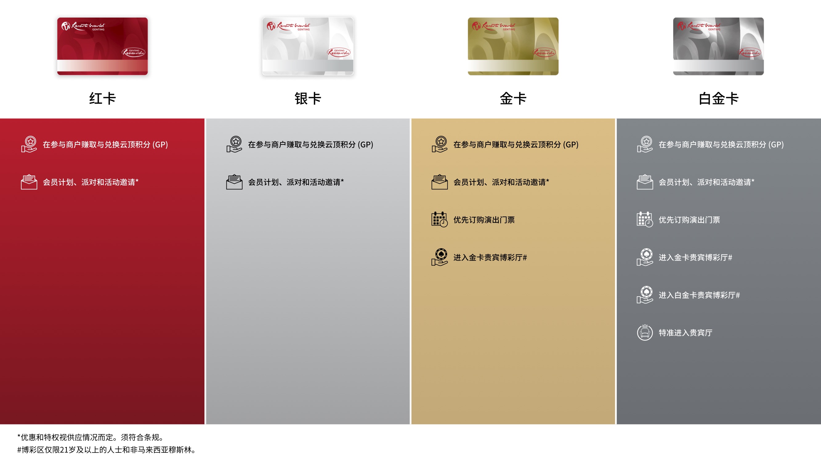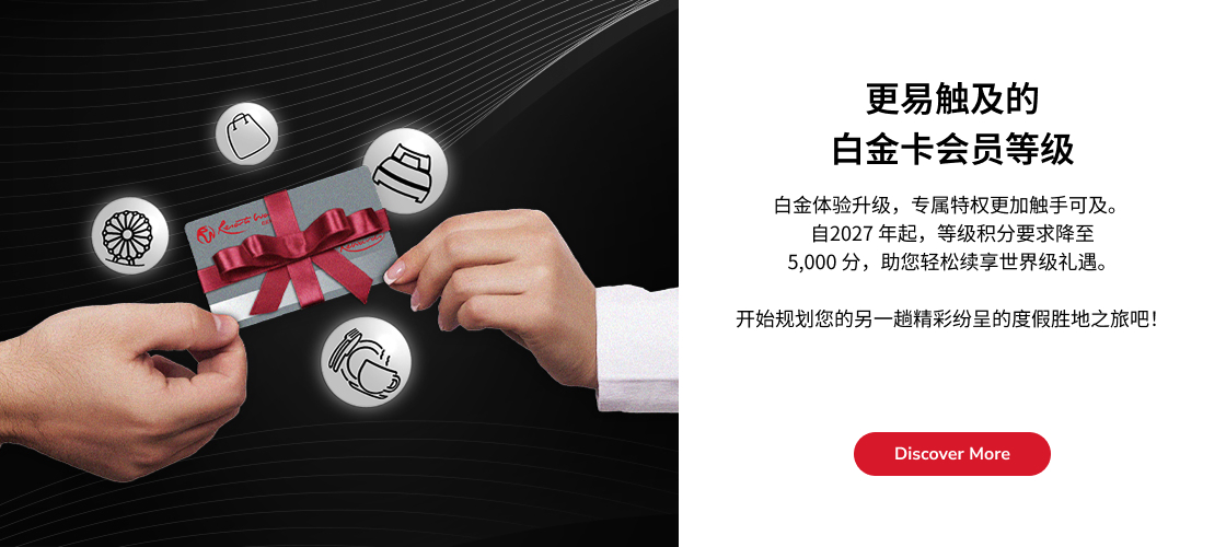 您可在云顶世界范围内消费时,包括餐饮、购物及玩乐等的同时赚取及兑换云顶积分(GP)。免费申请会员籍,并发掘一个全新的会员专属的奖赏世界。