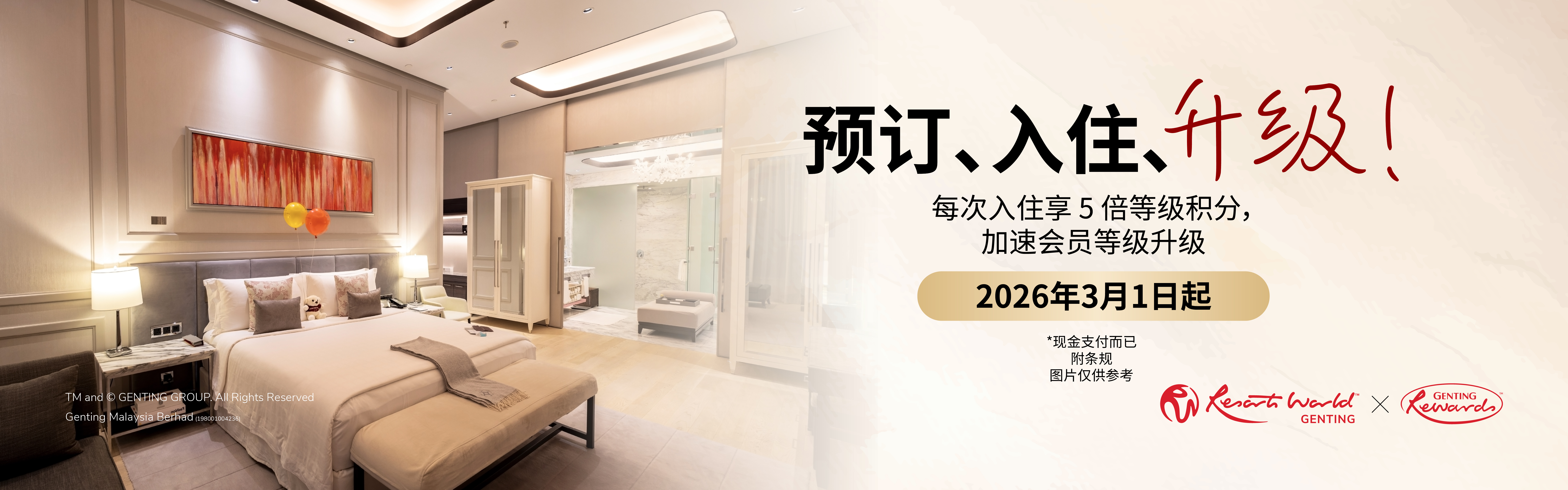 2. 此优惠适用于云尊奖赏计划旗下的所有酒店产业 (包括:云顶世界、云顶世界阿娃娜、云顶世界琪佳及云顶世界浮罗交怡)。