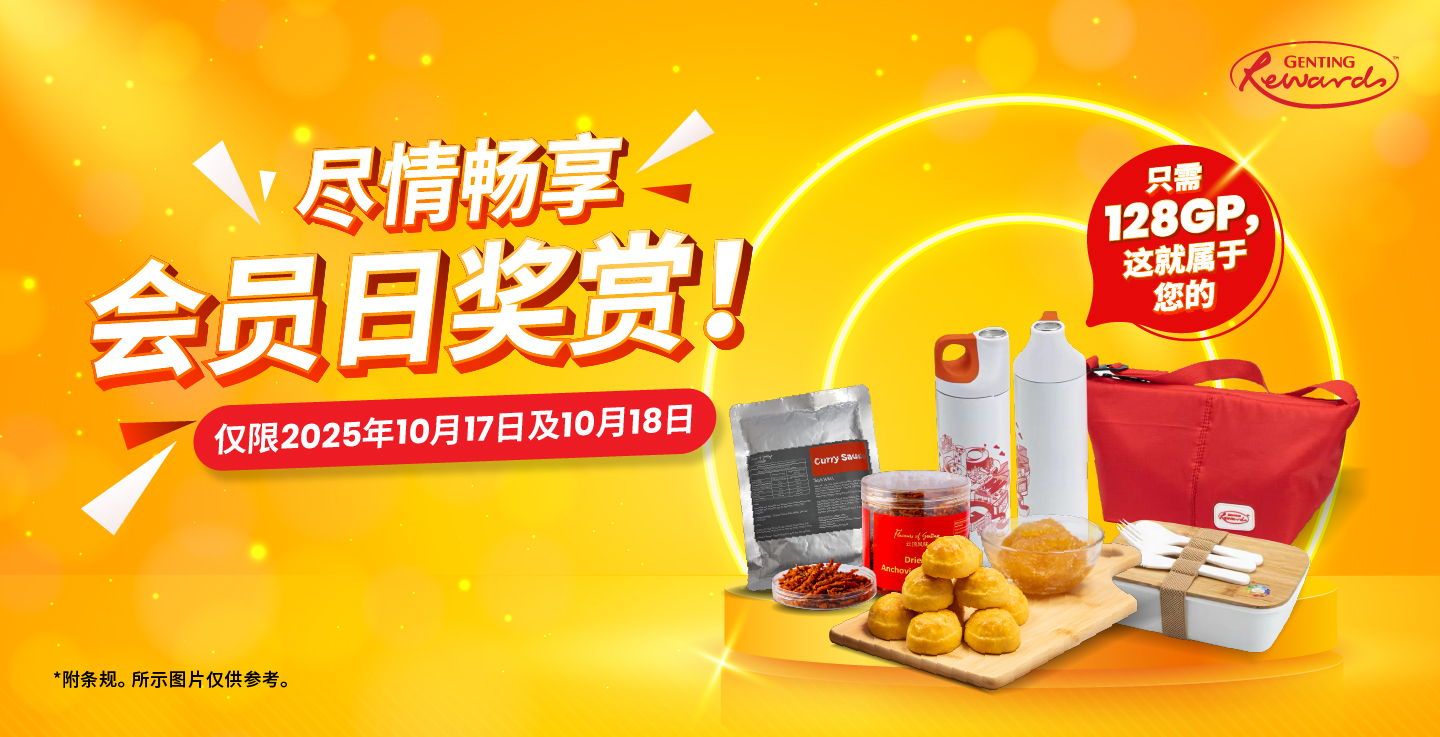 所有云尊卡会员籍 | 128GP | 一份午餐盒套装 + 一套“云顶风味”产品套装 (1罐江鱼仔參峇醬、凤梨酥 (6件)、1罐咖喱酱) |